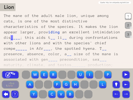 Mind the Gap brought an easy and entangling idea with many facilities to the AppStore. Solve language riddles in a coherent text. Improve your English in 15 areas with over 500 texts in several levels and modules.
